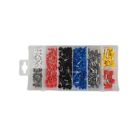 Assortiment met geïsoleerde adereindhulzen in 8 verschillende maatvoeringen. Ideaal voor het professioneel afwerken van kabels en draden, met betrouwbare isolatie en stevige bevestiging.